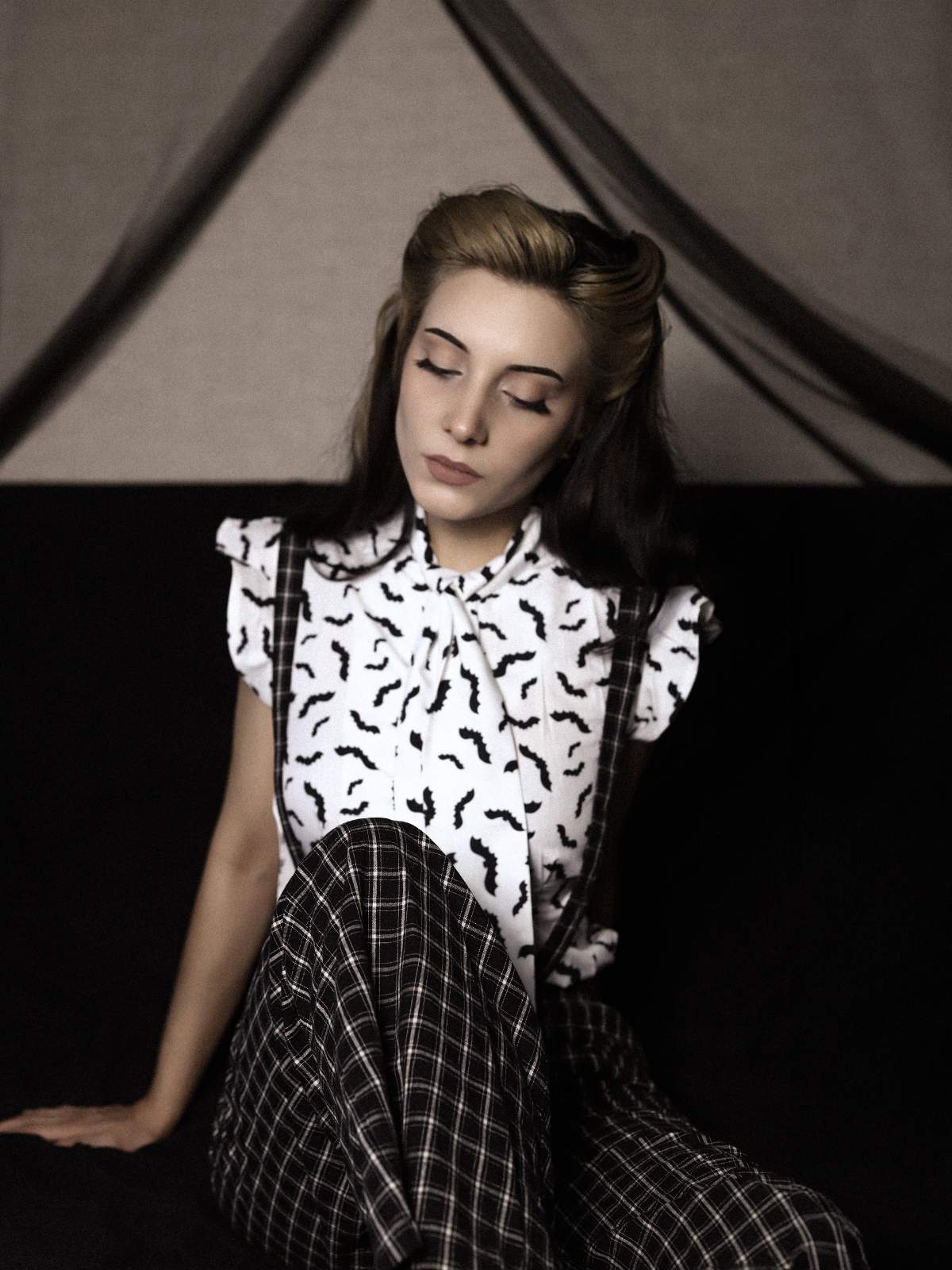Élevez vos normes, poupées ! Coulé dans un blanc et noir adorable, ce haut chemisier chéri des années 1950 arbore un corsage à coutures princesse, fixé par une mancheron qui offre un ajustement fabuleux à votre silhouette féminine. Un magnifique pantalon à bretelles de style vintage plein d'éclat féminin, adapté à l'école et au travail. C'est vraiment une pièce merveilleuse pour faire une déclaration vestimentaire sérieuse, où que vous choisissiez de la porter.