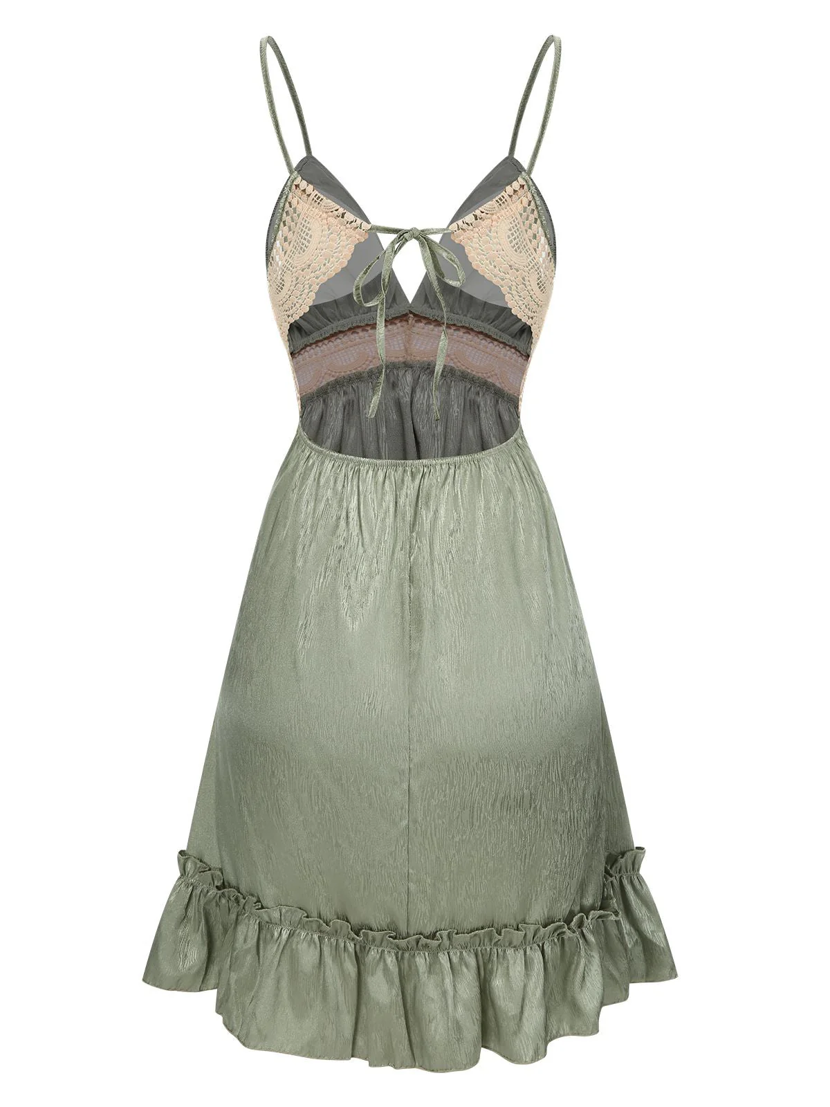 Chemise de nuit en dentelle guipure verte des années 1950 avec ourlet à volants