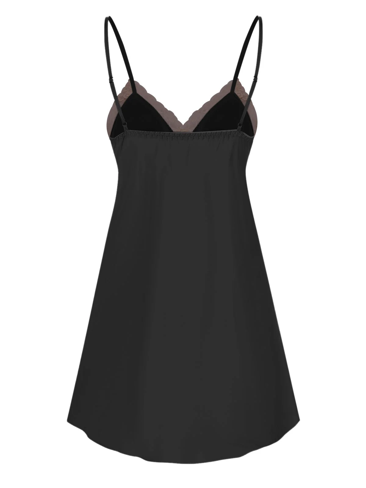Chemise de nuit patchwork en dentelle à bretelles spaghetti des années 1970