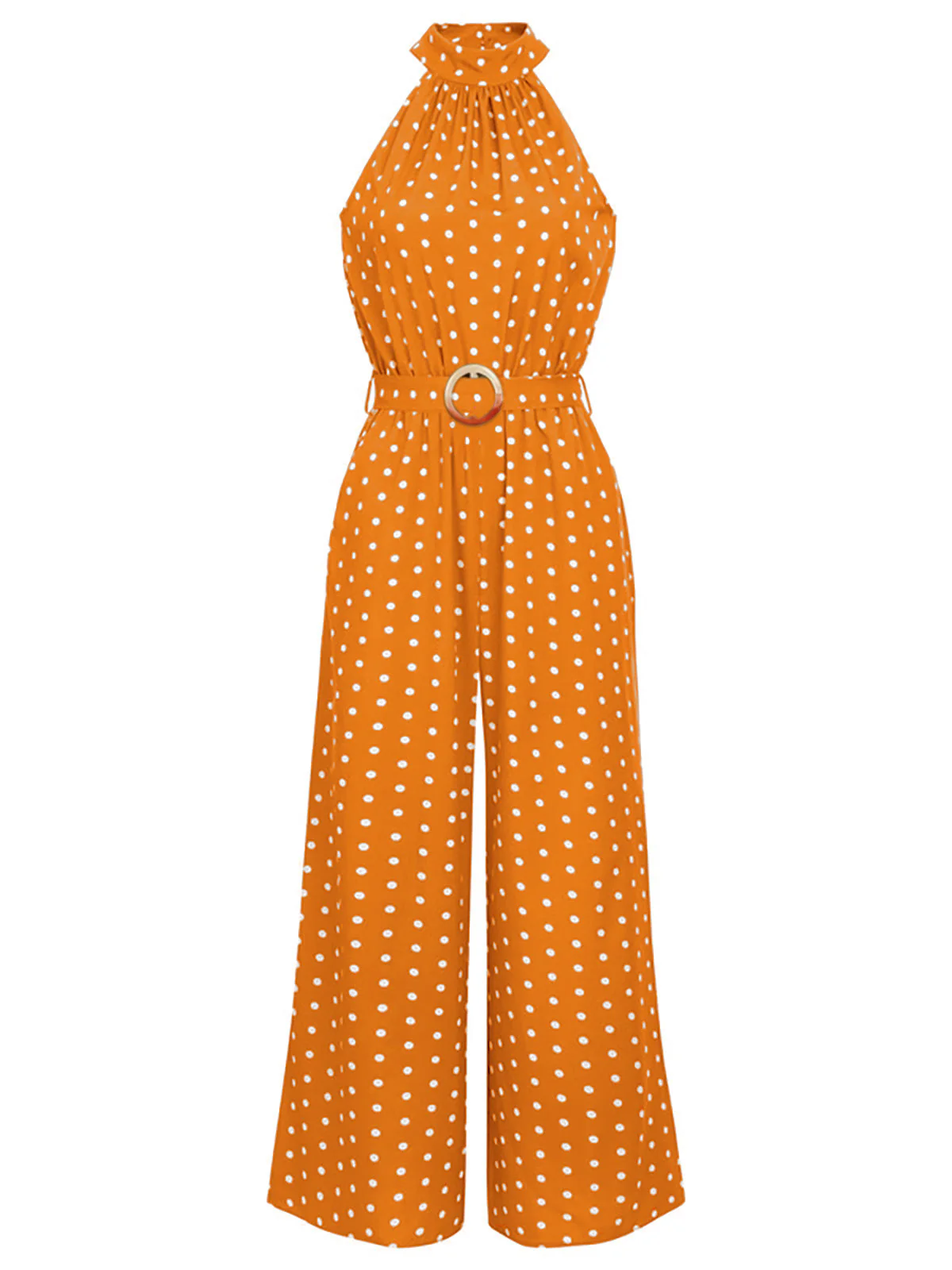 Combinaison Verte à Pois Années 1950 avec Ceinture