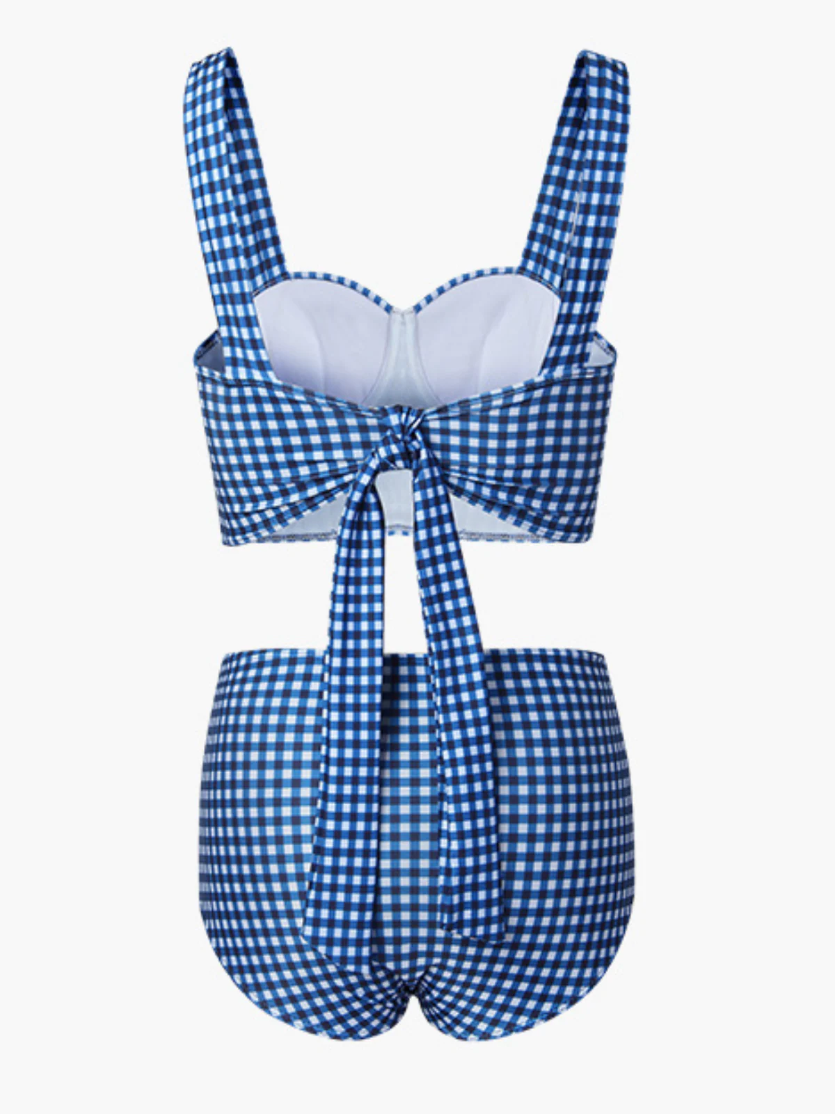 Ensemble de Bikini à Bretelles Rétro à Carreaux Bleu