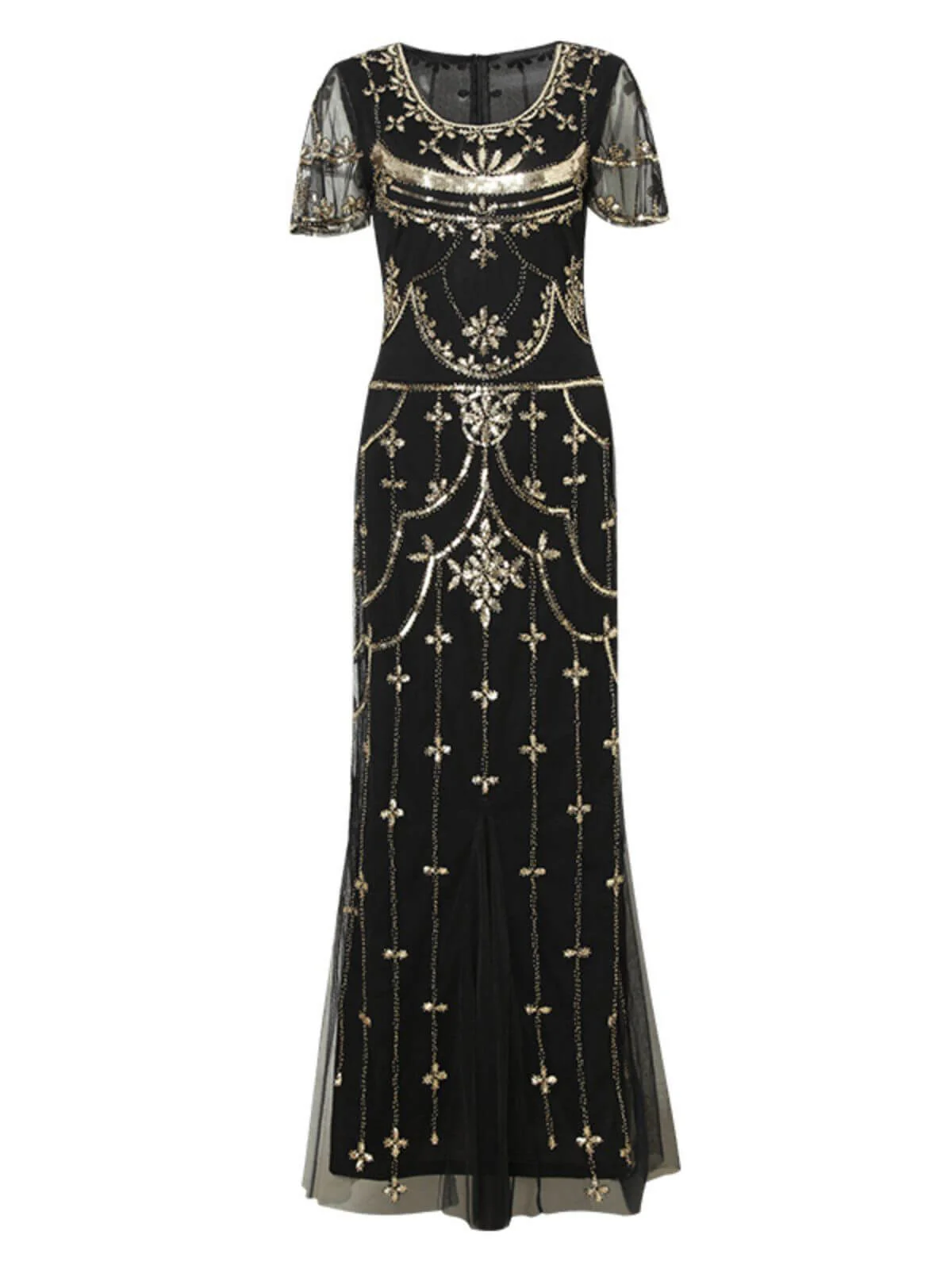 Robe Charleston à manches courtes en maille perlée des années 1920