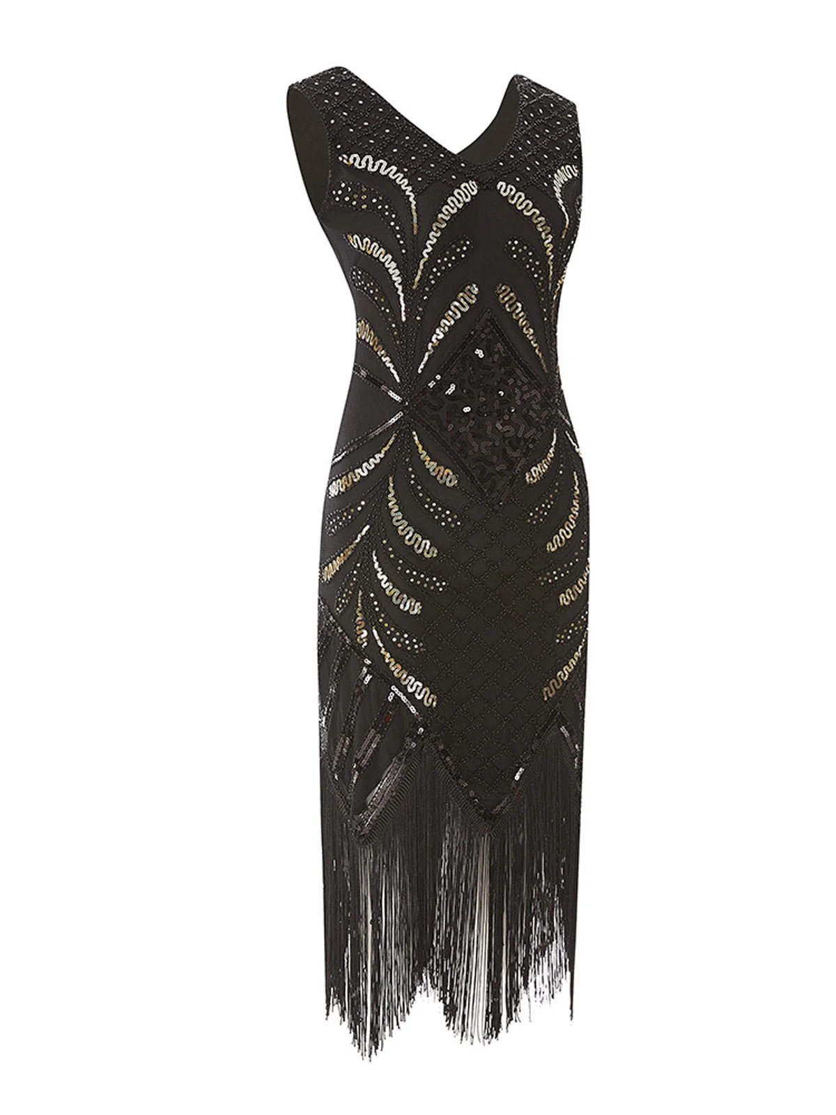 Robe Charleston Vintage Année 20 Gatsby à Franges Paillettes Soirée Cocktail